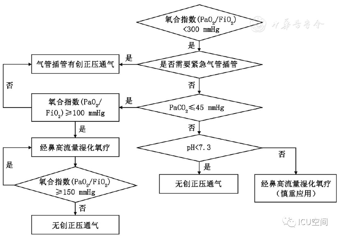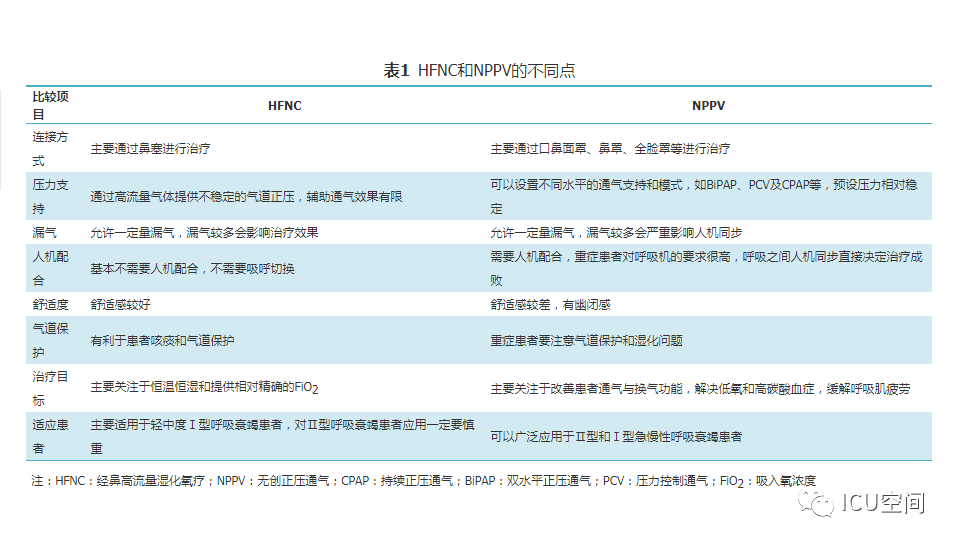 圖1 經(jīng)鼻高流量濕化氧療儀示意圖 人類開始氧氣治療的歷史可回溯到18世紀(jì)后葉,20世紀(jì)初即開始應(yīng)用橡膠制作的鼻導(dǎo)管進(jìn)行氧療[4]。1987年美國(guó)研發(fā)了最高流量可達(dá)20 L/min的氧療加溫濕化裝置MT-1000,應(yīng)用于囊性肺纖維化等患者氧療促進(jìn)下呼吸道分泌物排出。近10年來,HFNC進(jìn)入快速發(fā)展和臨床廣泛應(yīng)用階段,國(guó)際主流HFNC裝置都是采用無創(chuàng)呼吸機(jī)的工作原理:用空氧混合器進(jìn)行空氧混合,吸入氧濃度(FiO2)為21%~100%,應(yīng)用渦輪提供高流量的氣體,采用呼吸機(jī)應(yīng)用的加溫加濕器和管路加熱導(dǎo)絲對(duì)吸入氣體進(jìn)行全程加溫加濕,并通過近患者端實(shí)時(shí)監(jiān)測(cè)溫度和氧濃度進(jìn)行動(dòng)態(tài)調(diào)控。另外,部分呼吸機(jī)廠家在有創(chuàng)和無創(chuàng)呼吸機(jī)上設(shè)置了HFNC功能,進(jìn)一步拓展了呼吸機(jī)的臨床適用范圍,這也是未來的發(fā)展方向[5]。國(guó)內(nèi)HFNC的歷史僅有5年左右,在前期仿制國(guó)外HFNC的基礎(chǔ)上進(jìn)行創(chuàng)新,在很短的時(shí)間內(nèi)形成自己的特色,如可自動(dòng)調(diào)節(jié)和精確調(diào)控FiO2(21%~100%)、溫度控制精度可達(dá)到±1 ℃、呼吸管路采用免消毒氣路技術(shù)等。 二、HFNC設(shè)備的結(jié)構(gòu)特點(diǎn)及其工作原理 (一)HFNC的結(jié)構(gòu)特點(diǎn) HFNC按其結(jié)構(gòu)特點(diǎn)可分為3大組成部分。 (1)氣體的空氧混合部分:其作用是將空氣和氧氣按預(yù)設(shè)氧濃度在渦輪前進(jìn)行混合。氧濃度調(diào)控有2種方法,一種是通過浮標(biāo)式氧氣流量計(jì)調(diào)節(jié)氧氣流量實(shí)現(xiàn)對(duì)氧濃度的控制,該方法無法預(yù)設(shè)氧濃度,只能通過調(diào)節(jié)氧氣流量產(chǎn)生實(shí)際的FiO2;一種是微型比例閥和超聲氧濃度傳感器實(shí)現(xiàn)對(duì)氧濃度的控制,可以預(yù)設(shè)FiO2。 (2)氣體的加溫濕化部分:其作用是將空氧混合后的氣體進(jìn)行加溫濕化。 (3)氣體的輸送部分:其作用是保證已完成加溫濕化的空氧混合氣體以恒溫恒濕恒流速的方式輸送至患者端。高流量濕化氧療儀與患者連接部分為高流量鼻塞,高流量鼻塞的尖端呈斜面型的出口,質(zhì)地柔軟,用一個(gè)具有彈性可調(diào)節(jié)的過耳頭帶固定于患者面部。 (二)HFNC的生理學(xué)機(jī)制 HFNC通過輸送高流速氣體的方式,可以維持一定水平的PEEP,維持肺泡開放,有利于呼氣末肺泡復(fù)張和氣血交換。Corley等[6]通過使用電阻抗斷層掃描(EIT)測(cè)量心臟手術(shù)后肺容積的生理學(xué)研究證明了HFNC可促進(jìn)呼氣末肺容積增加,表明HFNC通過高流量產(chǎn)生的PEEP作用促進(jìn)肺復(fù)張。有研究結(jié)果顯示,HFNC流量每增加10 L/min,患者咽腔PEEP就增加0.5~1 cmH2O(1 cmH2O=0.098 kPa)[7]。流量增加到60 L/min時(shí),閉口的女性受試者咽腔PEEP可達(dá)到8.7 cmH2O左右,男性為5.4 cmH2O;張口呼吸情況下女性為3.1 cmH2O,男性為2.6 cmH2O左右。但值得注意的是,由于HFNC允許大量漏氣,患者若張口呼吸必然導(dǎo)致PEEP水平不穩(wěn)定[6]。 HFNC通過為患者提供恒定的、可調(diào)節(jié)的高流速空氧混合氣體,沖刷患者呼氣末殘留在鼻腔、口腔及咽部的解剖無效腔的氣體,可明顯減少患者下一次吸氣時(shí)吸入的CO2的含量[8]。M?ller等[9]通過81 mKr氣體測(cè)定HFNC對(duì)10名健康人鼻咽部和3例氣管切開患者CO2的清除率,發(fā)現(xiàn)CO2清除率和HFNC的氣體流速和佩戴時(shí)間直接相關(guān)。 HFNC主要關(guān)注于提供相對(duì)精確的恒溫和恒濕的高流量氧療,因而能夠更符合人體生理情況下呼吸道的氣體溫度及濕度,降低醫(yī)用干冷氣體對(duì)上下呼吸道黏液纖毛系統(tǒng)功能和黏膜的影響[10]。與普通氧療相比,使用HFNC可以明顯降低患者鼻、口、咽喉的干燥評(píng)分,有助于稀釋痰液和排痰,修復(fù)和維持人呼吸道上皮細(xì)胞和纖毛的結(jié)構(gòu)和功能,提高患者的舒適度,降低下呼吸道感染的發(fā)生幾率[6,11] 鼻咽腔通過提供較大的表面積對(duì)吸入氣體進(jìn)行濕化和溫化,但同時(shí)吸入氣體之間的摩擦?xí)?duì)氣流產(chǎn)生明顯的阻力[12]。HFNC可以提供滿足患者吸氣流速需求、恒溫恒濕的高流量氣體,患者在吸氣時(shí)不需要用力吸氣也不需要對(duì)吸入氣體進(jìn)行加溫加濕,這樣不僅降低吸氣阻力,同時(shí)避免患者對(duì)吸入氣體進(jìn)行溫化濕化所需的代謝消耗,減少患者的呼吸做功[13,14]。而且與常規(guī)氧療輸出的低流量氧氣方式相比,HFNC能提供符合或超過患者所需的吸氣峰流速,減少了吸氣時(shí)空氣的稀釋作用,使得吸入氧氣的濃度不會(huì)受到患者的呼吸頻率、吸氣流速、呼吸形態(tài)等因素的影響,為患者提供精確穩(wěn)定的吸氧濃度,有利于改善患者氧合[6]?;颊叩脱鯛顟B(tài)得到改善,呼吸更舒適,自主用力呼吸減弱,加之PEEP作用,呼吸功會(huì)隨之降低[15]。 三、HFNC與NPPV的異同點(diǎn) HFNC和NPPV在治療原理上存在許多相似之處。從工作原理上看,都是電動(dòng)渦輪機(jī)驅(qū)動(dòng)形成高速氣流,通過電磁閥實(shí)現(xiàn)流量可控,氣流均可加溫加濕,都是傳統(tǒng)意義上的正壓通氣,能夠維持一定水平的PEEP,實(shí)現(xiàn)氣道開放,減少死腔,改善通氣,且允許開放氣道發(fā