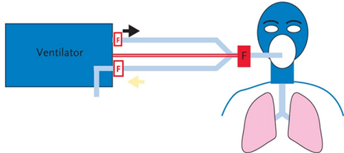 (圖1 呼吸機(jī)的吸氣和呼氣端分別安裝過濾器)