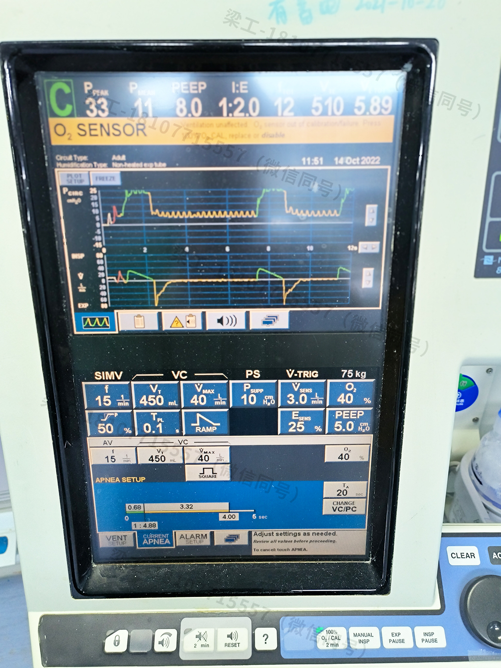 二、連接好氧氣管 三、開機到正常的工作頁面 四、點擊下圖圈出的按鈕,激活氧電池 五、出現(xiàn)以下界面,界面中的進度條一直走 六、等大概2分鐘左右,進度條走完,自動出現(xiàn)以下界面,定標完成 七、氧濃度設(shè)定值 八、氧濃度顯示值 PB泰科呼吸機兼容氧電池(氧氣傳感器) 型號:OOM202,質(zhì)保一年 適用機型: PB泰科:PB840、PB760、PB980 Siemens西門子:900C、300A HAMILTON哈美頓:GALINEO(伽利略)、 RAPHREAL(拉斐爾)、 ARABELLA阿拉丁,G5 靈智eVent:Inspiration、evoution、3E Taema天馬:T75、EXTEND XT 貝斯特1000